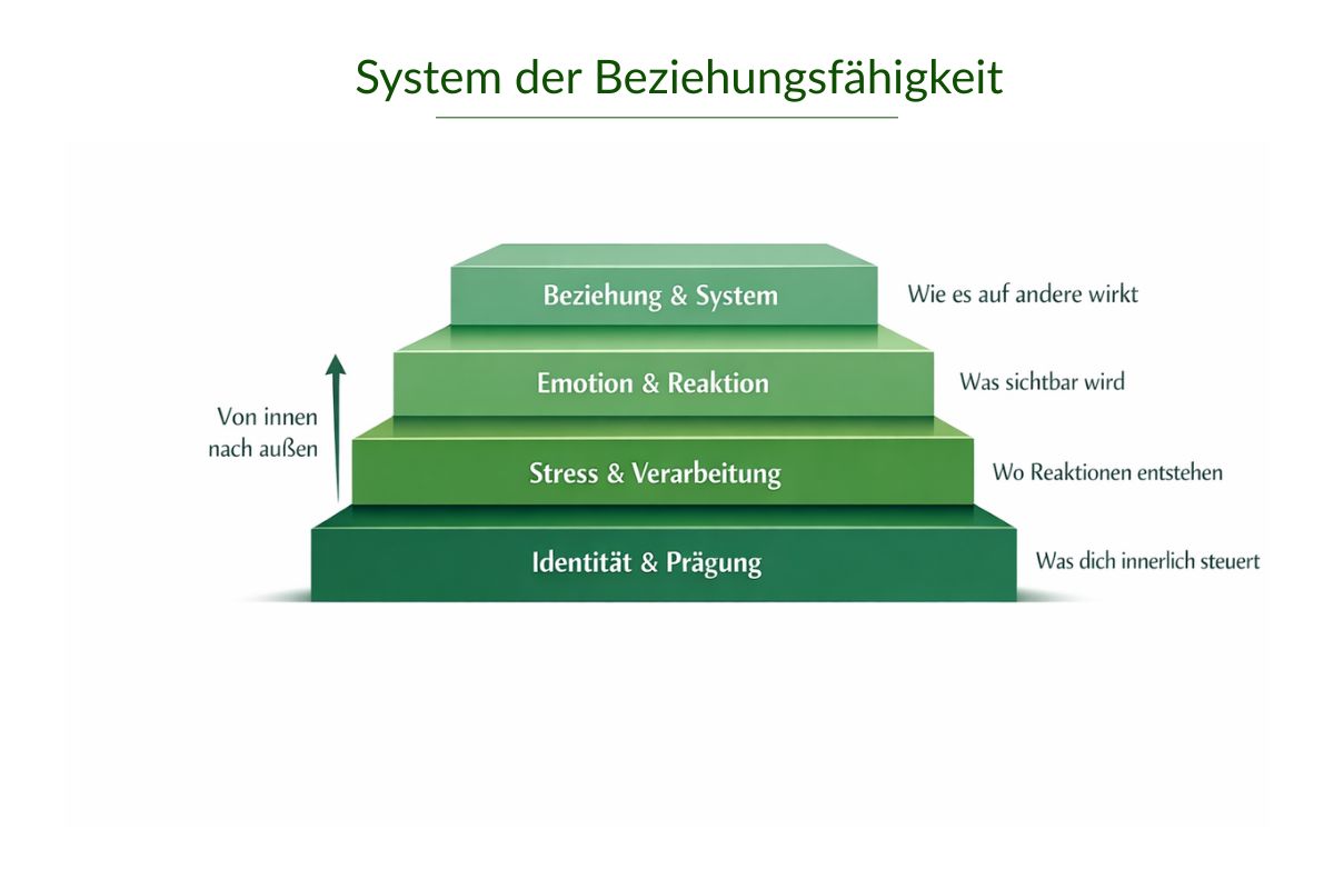 Beziehungsfähigkeit bedeutet, innere Programme zu regulieren, Selbstwert zu stabilisieren und Systeme zu verstehen, statt Menschen zu bekämpfen.